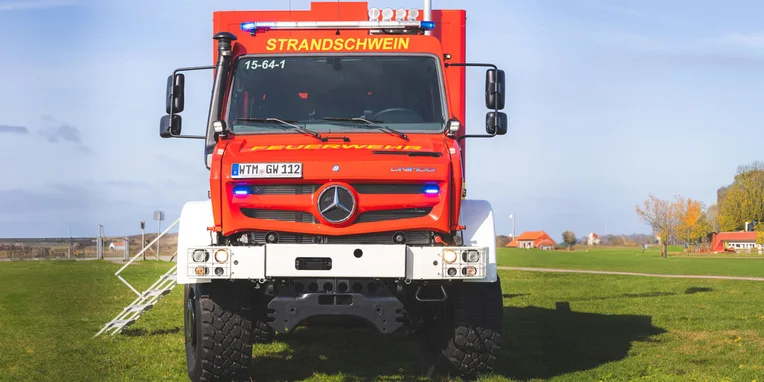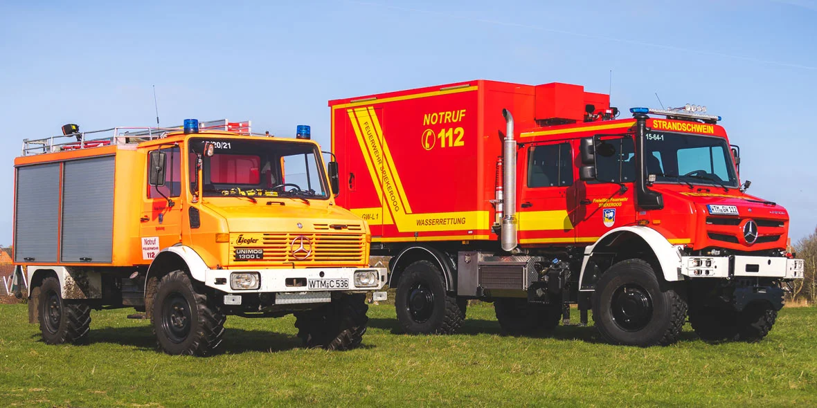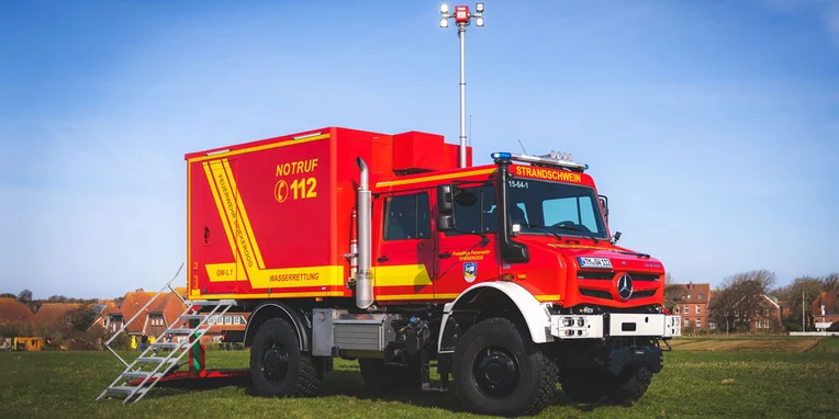Dal punto di vista dei vigili del fuoco nordici, i "Floriansjünger", inoltre, c'erano solo pochi veicoli che avessero la necessaria profondità di guado fino a 1,2 metri, potessero avanzare senza problemi sul terreno sabbioso con un carico utile di circa 3500 kg e rimanessero altamente flessibili nell'uso: "Non poteva che essere l'Unimog", dice Claas Warenski, "questo era chiaro fin dall'inizio".