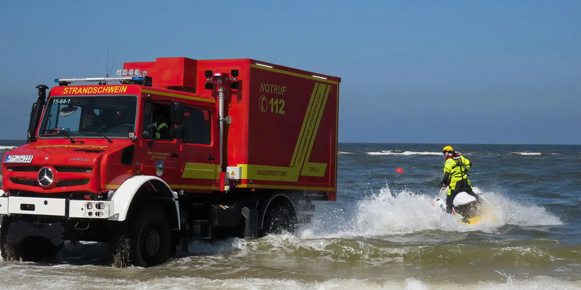 "Ci servono sempre", riferisce il capo dei vigili del fuoco del comune. "Per esempio, quando i kitesurfer vanno alla deriva, una barca a vela si rovescia o le persone si perdono in un'escursione su una piana di fango al buio". Con l'Unimog, il pilota può partire senza ritardi. "È fantastico. Anche in caso di forti mareggiate".