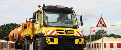 La necessità di trovare un modello con più spiccate caratteristiche fuoristrada ma in grado di garantire prestazioni efficienti anche su strada si è manifestata solo da quando l'azienda ha iniziato a farsi carico di un maggior numero di compiti per conto delle amministrazioni comunali. La scelta è stata presto fatta: quale veicolo migliore dell'Unimog? Il versatile portattrezzi, infatti, non si limita ad affrontare in modo disinvolto condizioni stradali estremamente complesse, ma con una velocità massima di 89 km/h può rapidamente recarsi nel luogo dell'intervento. A queste caratteristiche si aggiunge una buona redditività di esercizio. Dennis Friedrich e il suo team non hanno alcun rimpianto, anzi: l'Unimog U 423 ha persino superato le loro aspettative.
