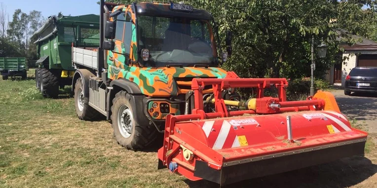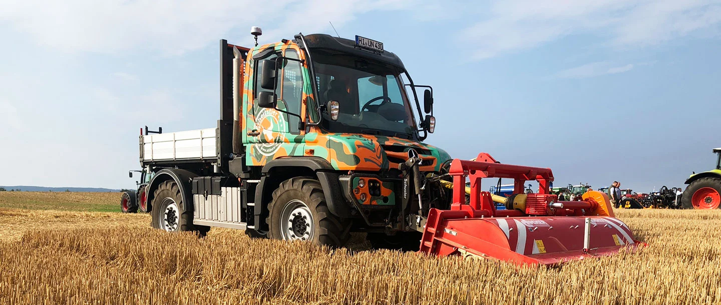 Il soprannome di macchina da lavoro, ben visibile anche sulla porta del conducente, l'Unimog se lo è davvero meritato. Il veicolo dimostrativo da 300 CV con motore a sei cilindri è stato acquistato nell'estate del 2019 per presentare ai potenziali clienti le svariate possibilità di impiego dello Special Truck, che da allora viene utilizzato senza sosta per svolgere le attività più disparate.