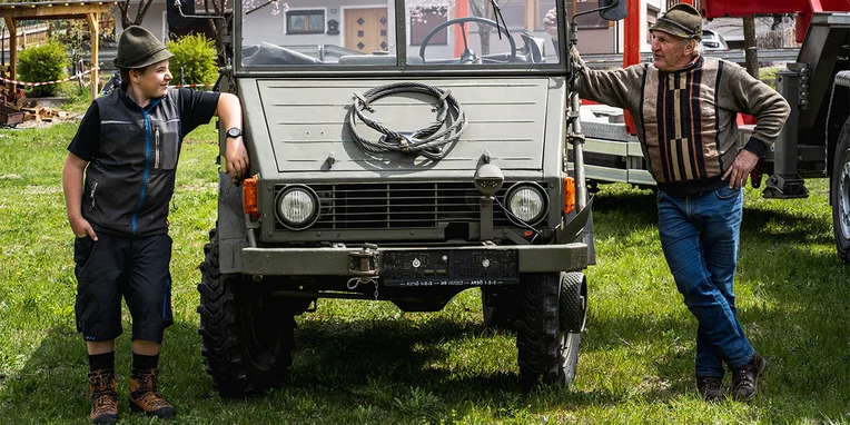 La famiglia possiede anche un Unimog costruito nel 1952. L’anziano Alois Thurner ha acquisito il veicolo dall’esercito svizzero direttamente con l’equipaggiamento originale quando fu dismesso. Da allora utilizza questo gioiellino, di cui è estremamente orgoglioso, per partecipare ai raduni dei veicoli d’epoca.